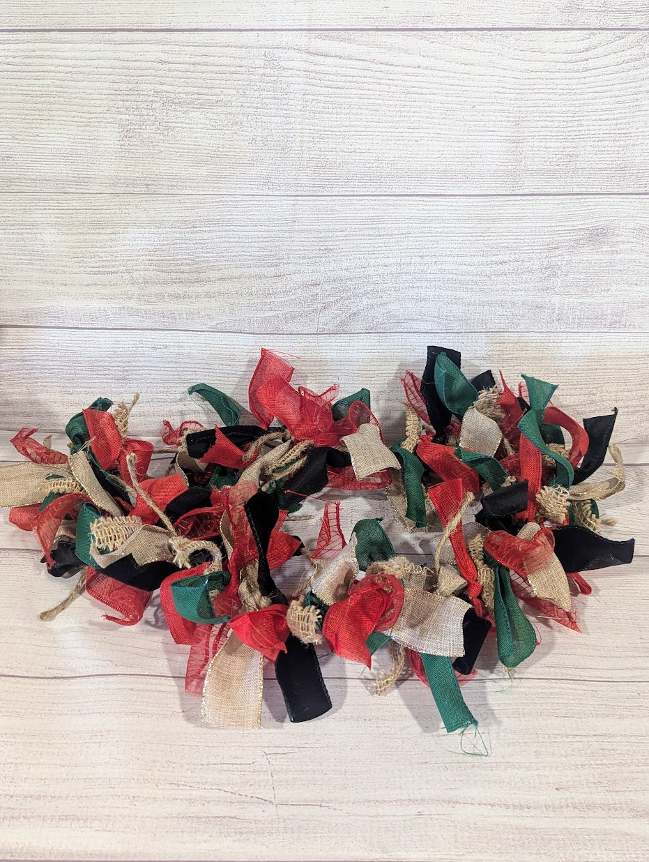 Ribbon garland is 48" long and comes unassembled in a ribbon bundle for you to tie on the jute string.