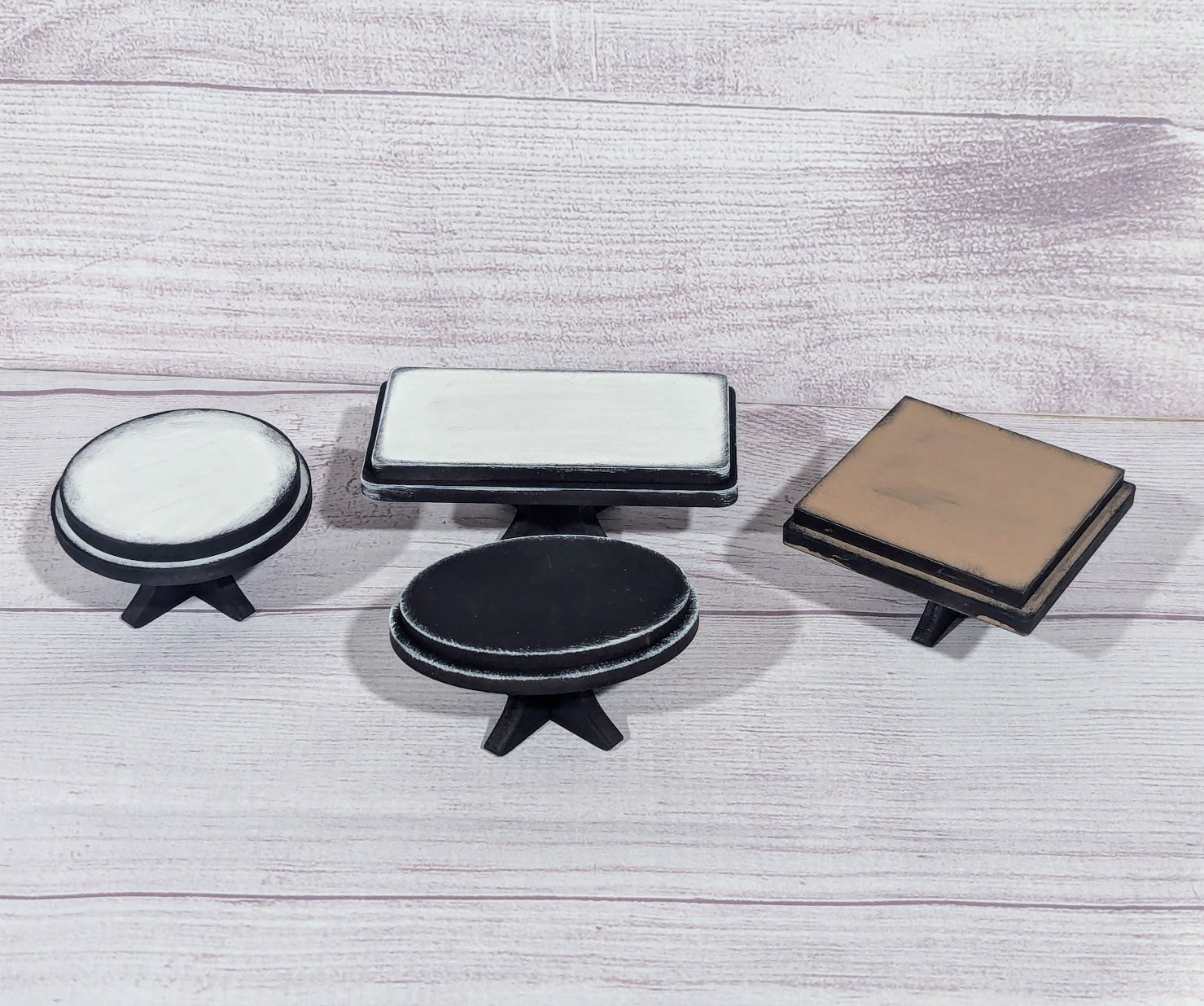 Elevate your display game with these adorable mini risers! Perfect for styling tiered trays, shelves, or tabletops, these stackable stands add dimension and visual interest to any space. Mix and match heights to create a dynamic, eye-catching arrangement that showcases your favorite decor, plants, or collectibles. Whether you're staging a vignette or organizing a shelf, these versatile risers make it easy to layer your style. Small in size, big on impact!